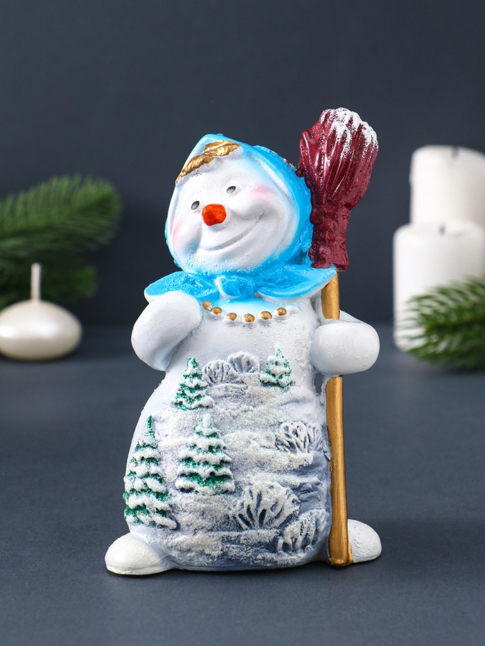 Свеча декоративная «Снеговик с метлой» 8×6.5×14 см, голубой