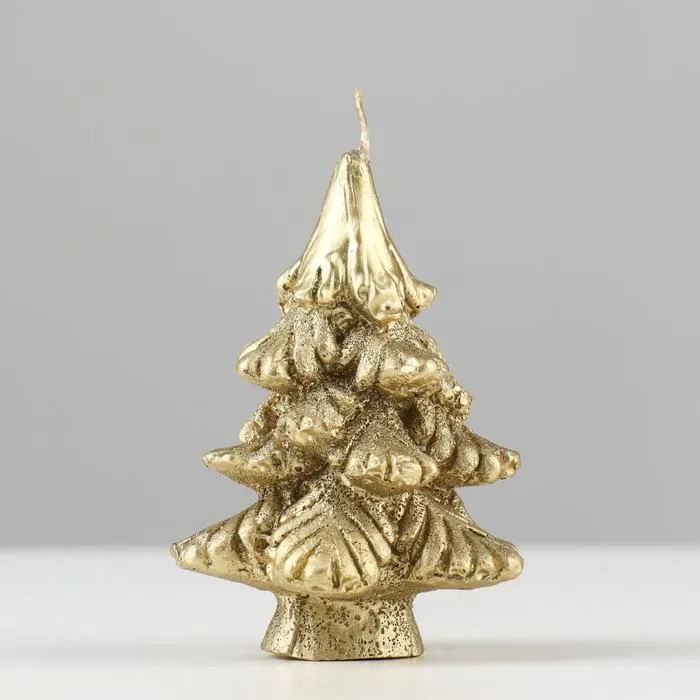 Свеча декоративная «Ёлочка на пеньке», 7 см, золотая
