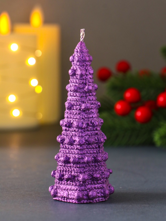 Свеча декоративная «Ёлочка с шариками», 45×102 мм, лак, фиолетовая
