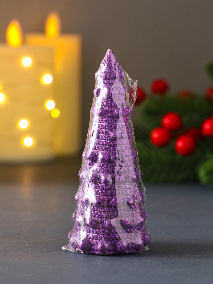 Свеча декоративная «Ёлочка с шариками», 45×102 мм, лак, фиолетовая — Характеристики