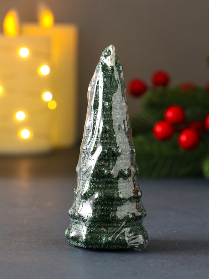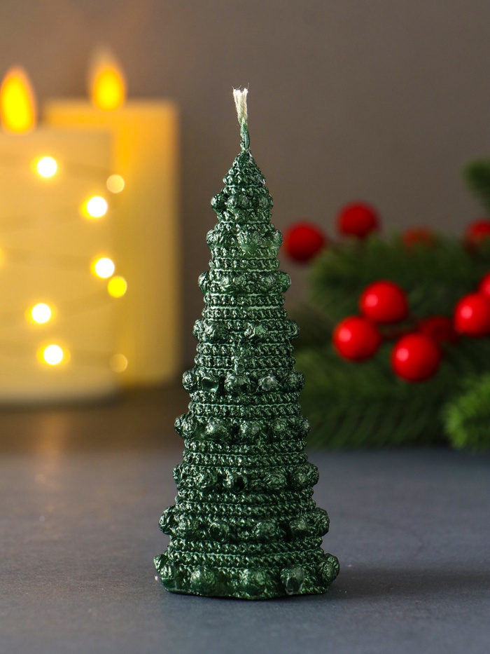 Свеча декоративная «Ёлочка с шариками», 45×102 мм, лак, зелёная