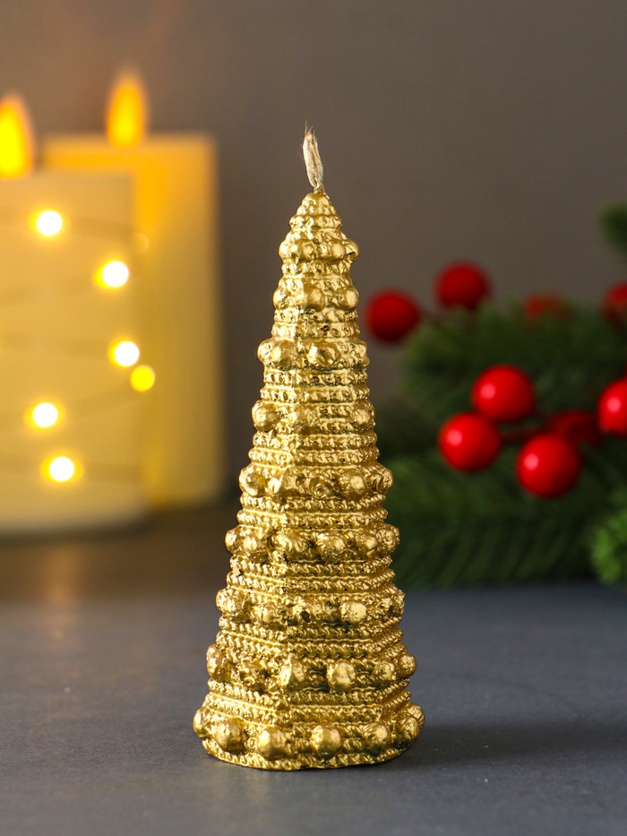 Свеча декоративная «Ёлочка с шариками», 45×102 мм, лак, золото