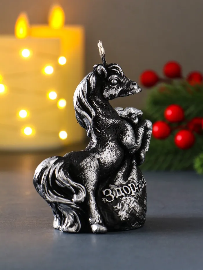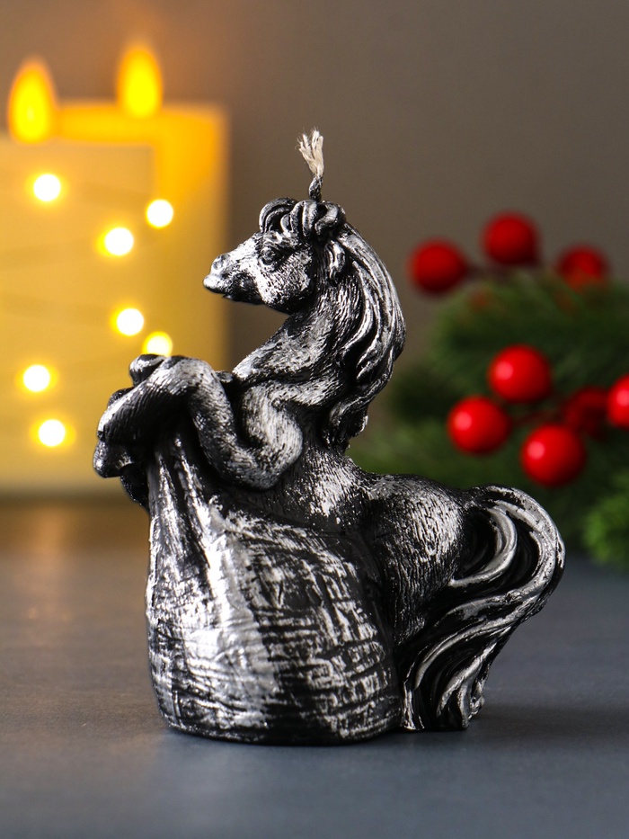 Свеча декоративная «Лошадь с мешком подарков», лак, 9.2×8×5, чёрная — Характеристики