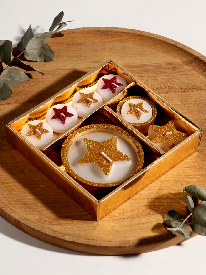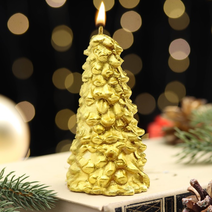 - Утонченный золотой декор: Свеча выполнена в насыщенном золотистом тоне, который переливается при свете. Она вносит в обстановку ноту благородства и гармонии, идеально сочетаясь с большинством стилей интерьера.
