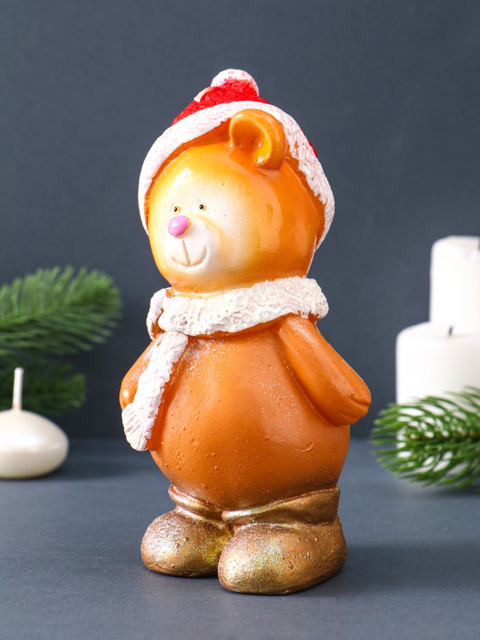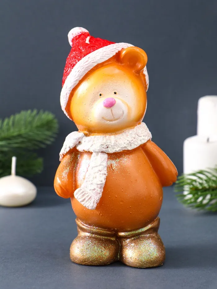 Создайте уютную атмосферу волшебства в преддверии праздника! Декоративная свеча «Мишка в красной шапке» — это милый и трогательный акцент для зимнего интерьера. Фигурная свеча в виде забавного медвежонка создает настроение уюта и ожидания чуда, даже без пламени.
