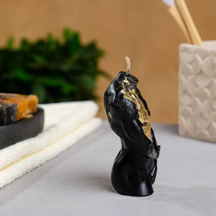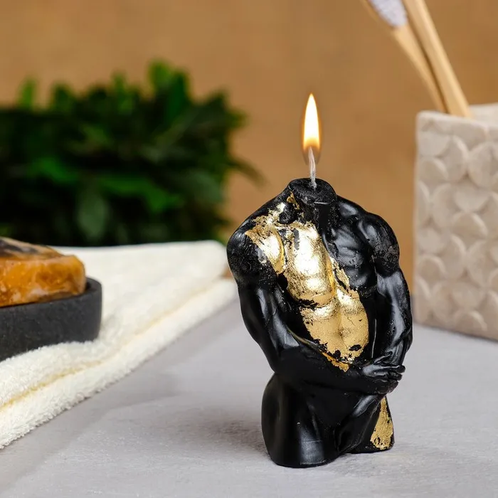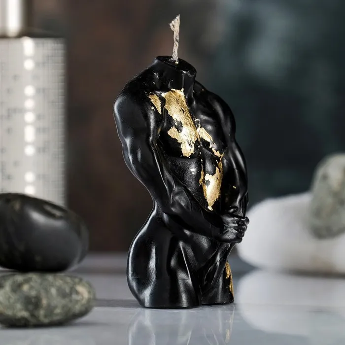 Свеча декоративная «Мужской торс», чёрная с поталью, 9 см