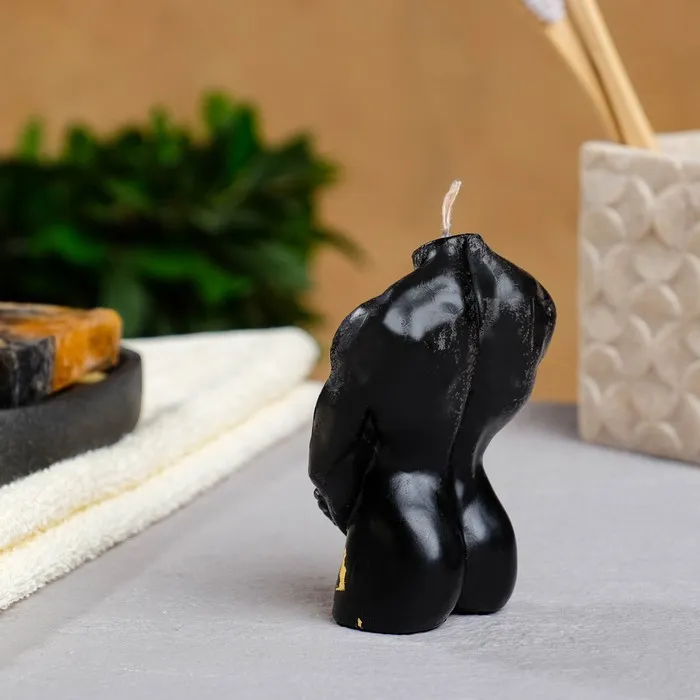 Свеча декоративная «Мужской торс», чёрная с поталью, 9 см — Характеристики