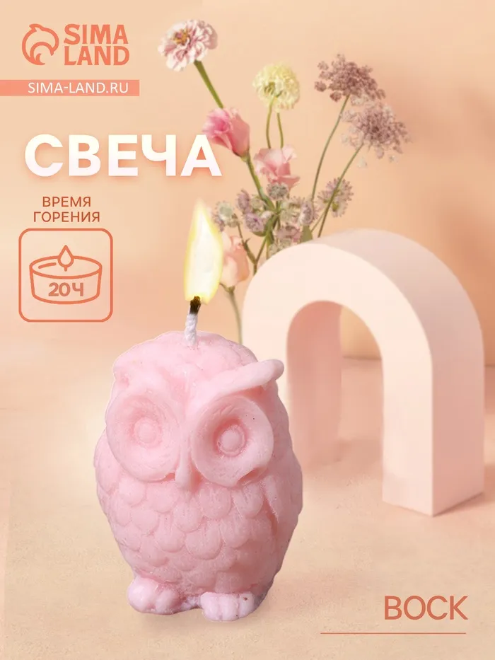 Свеча фигурная формовая «Сова», 5×5×6 см, соевый воск, МИКС