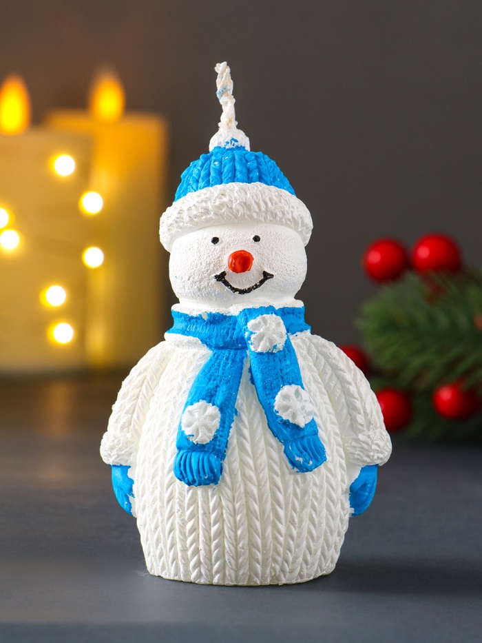 Новогодняя свеча декоративная «Снеговичок», 6×5.5×11 см, белый