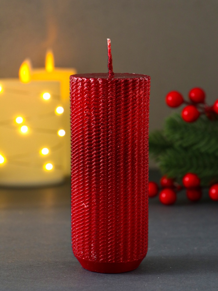 Свеча-цилиндр «Вязаный», 47×117 мм, лак, красная