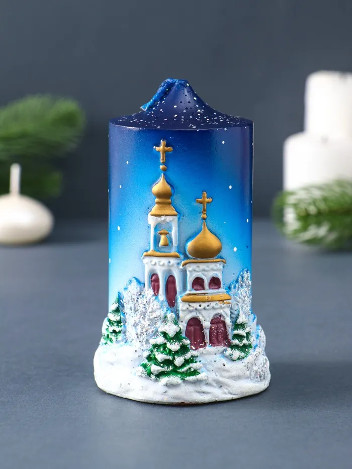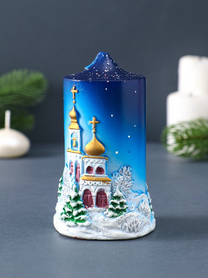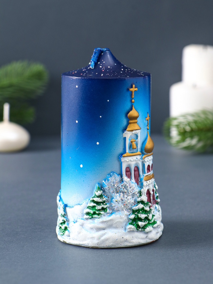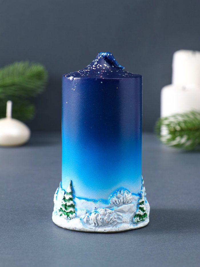 - Насыщенный синий оттенок: Цвет напоминает о тёплом зимнем небе в канун Рождества. Свеча создаёт яркий акцент в интерьере, гармонично сочетаясь с традиционными украшениями в золотых, серебряных и белых тонах.