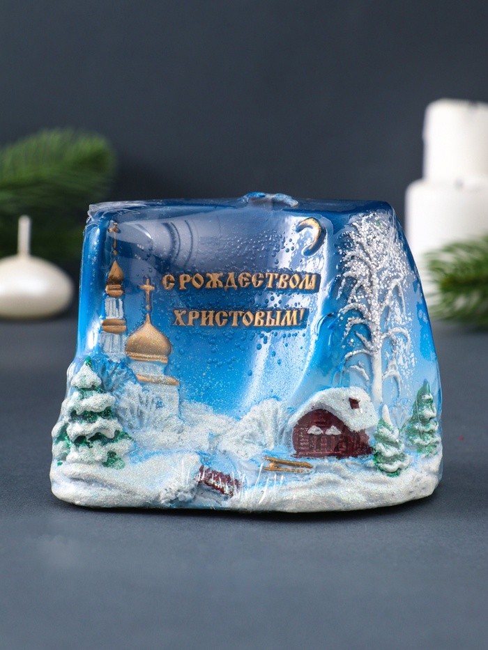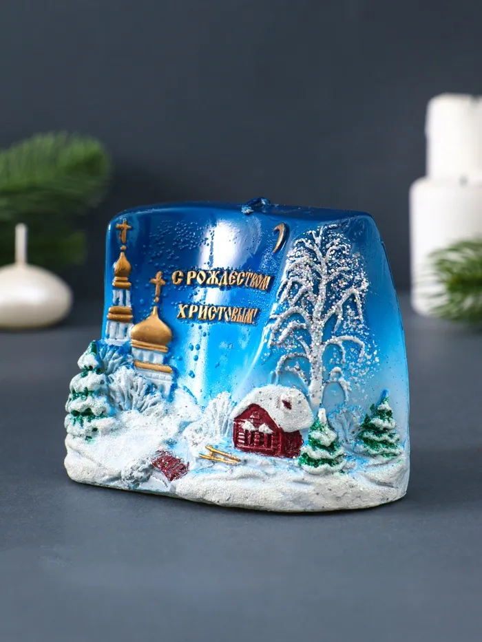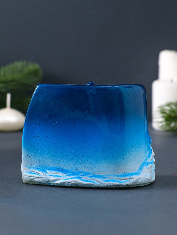 - Глубокий синий цвет: Насыщенный оттенок напоминает о зимнем вечернем небе, добавляя в обстановку ощущение спокойствия и величия праздника. Свеча становится стильным акцентом в украшении интерьера.