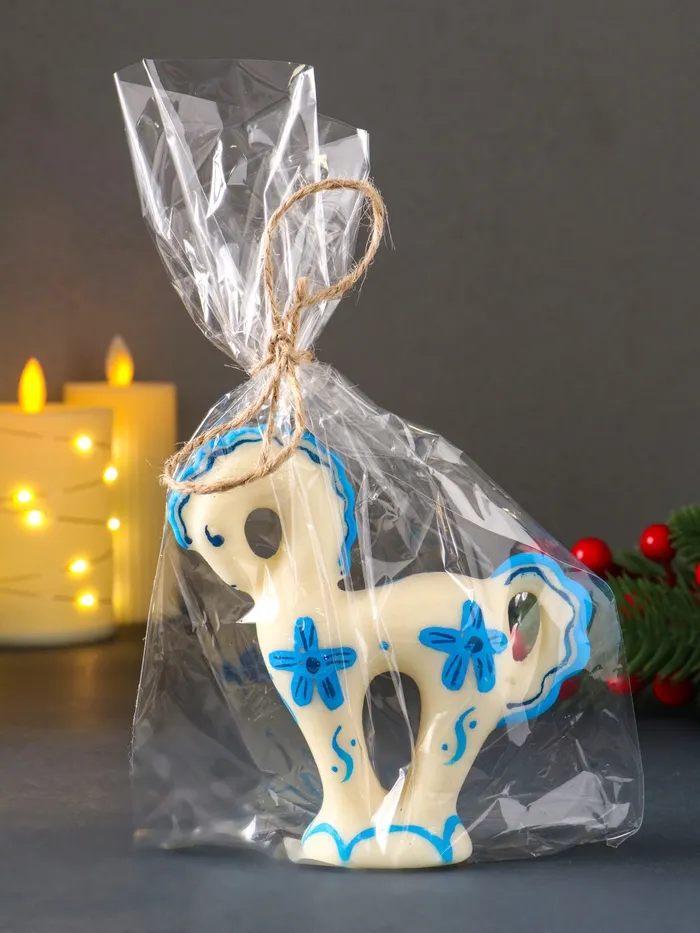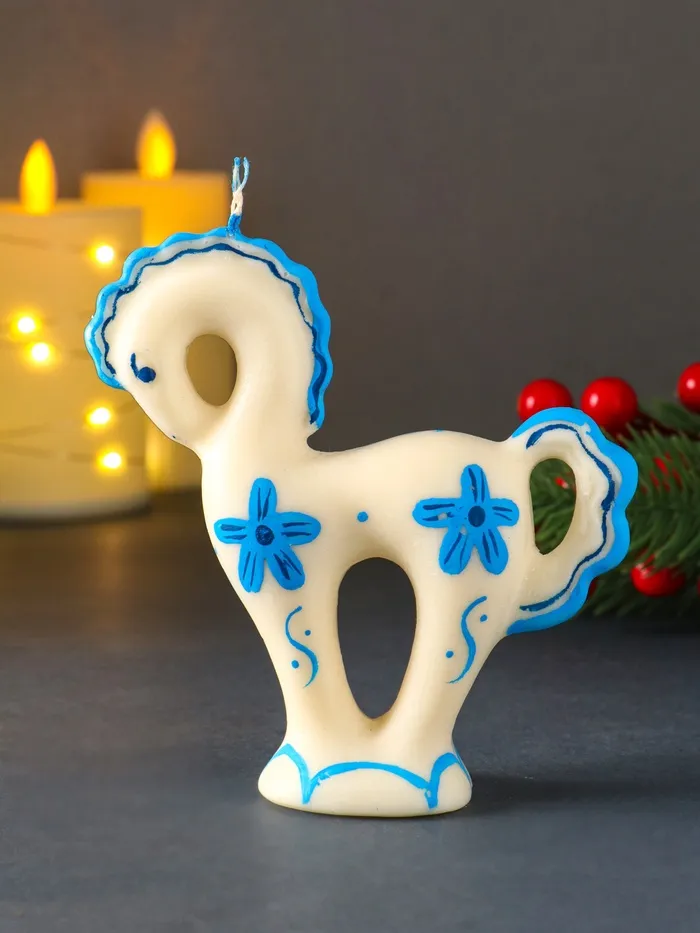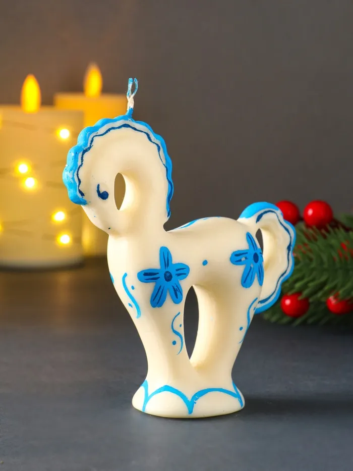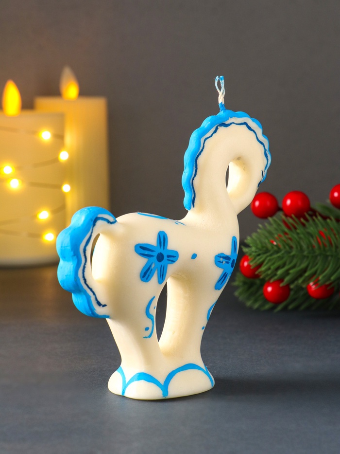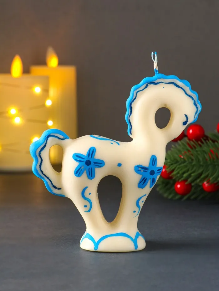 Представляем уникальный элемент декора, который сочетает в себе традиции русского народного искусства и современный дизайн — декоративную свечу с изображением символа года в стиле гжель. Её изящные формы и благородные оттенки белого и голубого создают атмосферу уюта и гармонии, делая её идеальным выбором для украшения дома или подарка близким.