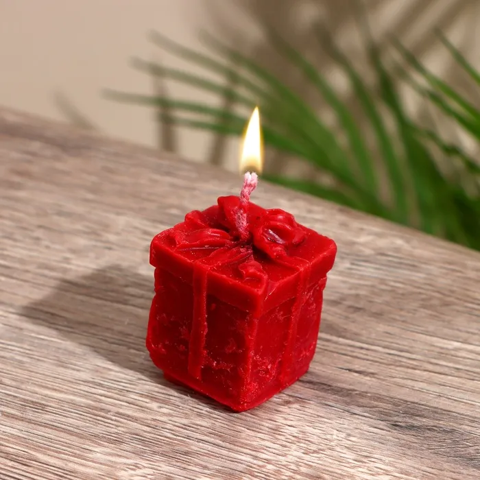 Свеча новогодняя «Коробочка с бантиком», 3.5×3.5×4 см, соевый воск