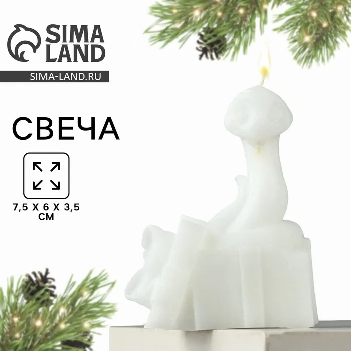 Свеча новогодняя «Змейка с подарком», на Новый год, белая, 7,5 х 6 см