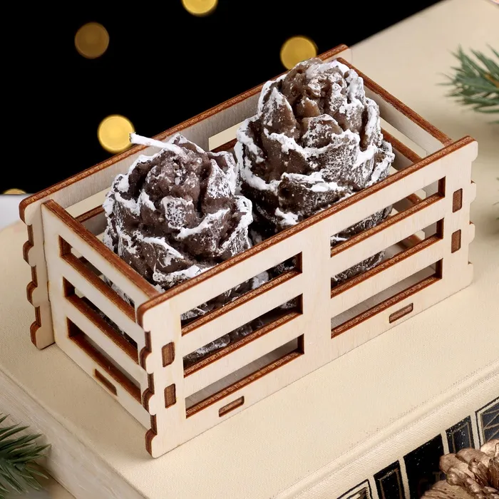 Набор свечей декоративных «Две шишки», в деревянном ящике