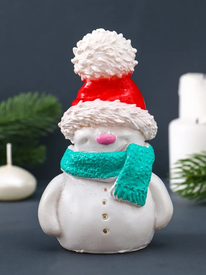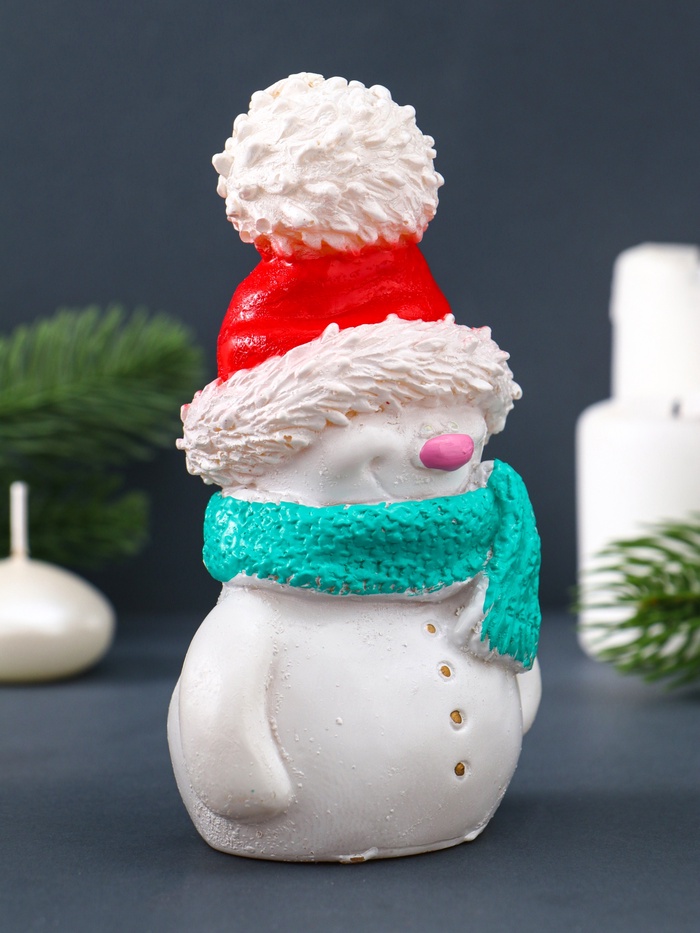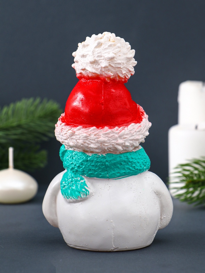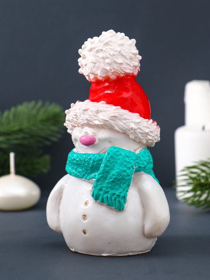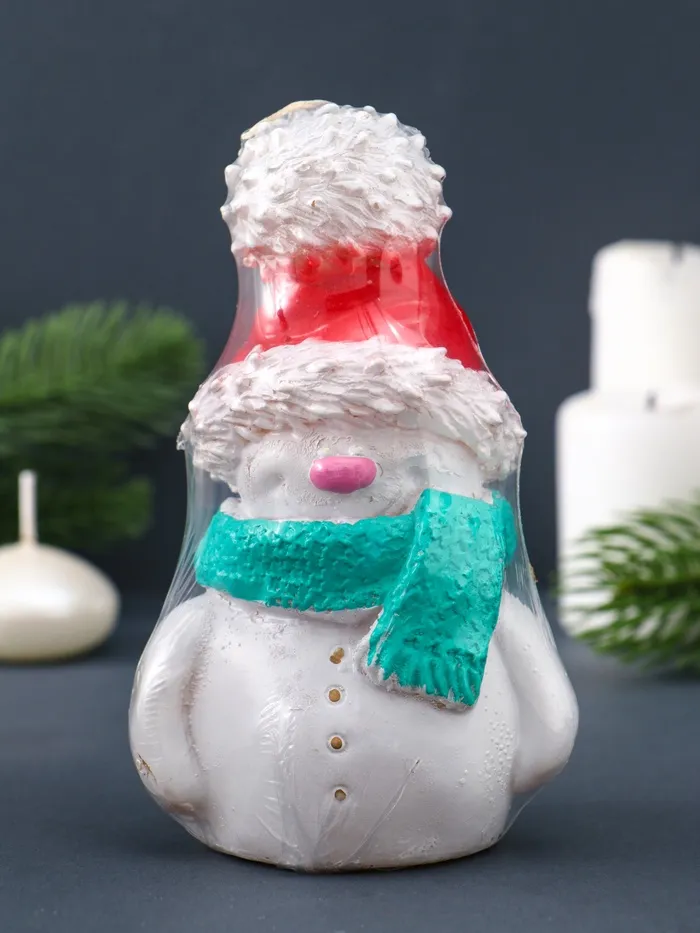Белый цвет свечи символизирует чистоту снега, а детализированная фигурка снеговика в красной шапке добавляет праздничного шарма и универсальности — она подходит для любого сезона, напоминая о зимних радостях без привязки к конкретным праздникам. Неароматизированная, она идеально впишется в интерьер, где ценят натуральные материалы и эстетичную простоту.