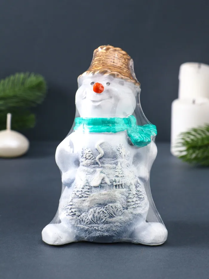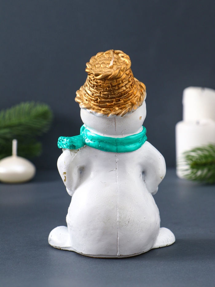 Свеча изготовлена из высококачественного парафина, который гарантирует долговечность и равномерное горение. Несмотря на отсутствие ароматизатора, её внешний вид сам по себе создаёт уютную атмосферу, напоминая о традициях зимних праздников. Золотой колпак снеговика добавляет изделию особого шарма и элегантности, превращая его в настоящее произведение искусства. Эта свеча станет идеальным украшением для создания праздничного настроения или оригинальным подарком для близких.