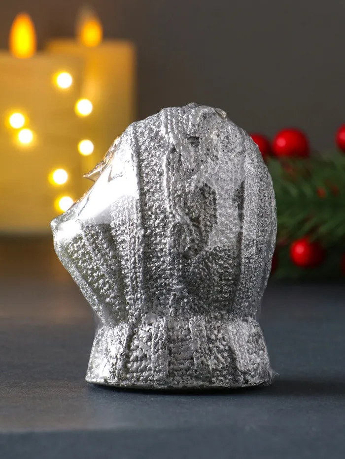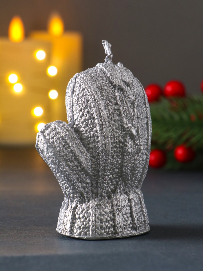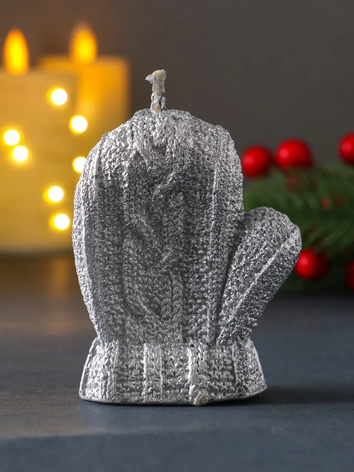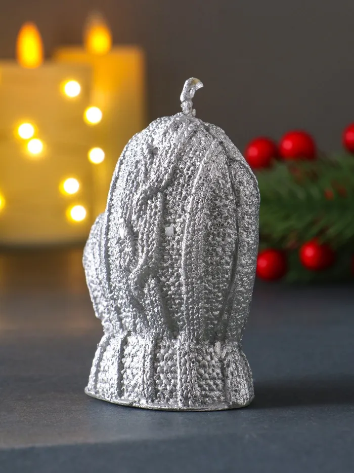 Позвольте зимней магии воплотиться в изящной форме, которая напомнит о тёплых моментах зимних прогулок и домашнего уюта. Эта декоративная свеча, выполненная в форме традиционной варежки с серебристым покрытием, станет элегантным акцентом в праздничном декоре, создавая атмосферу тепла и безмятежности.