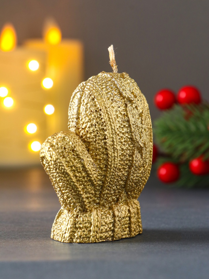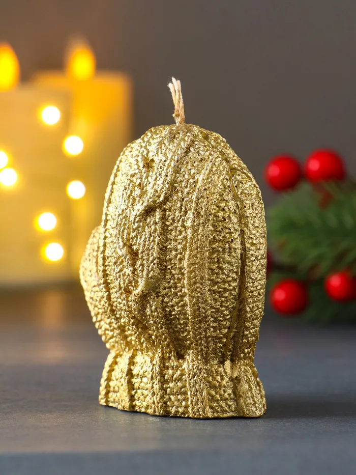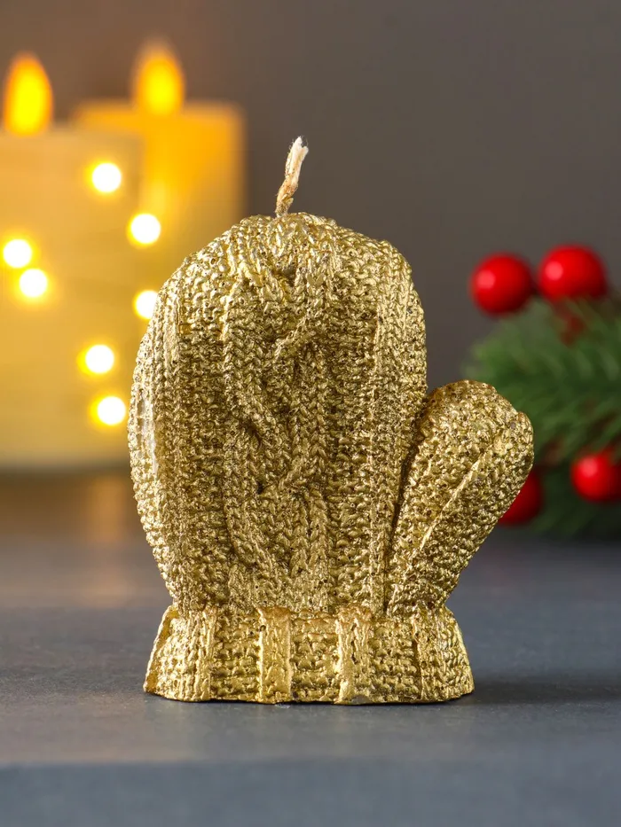 Представляем декоративный элемент, который добавит теплоты и уюта в ваш дом — свечу в форме варежки с золотистым лаковым покрытием. Её уникальный дизайн сочетает в себе нотки традиционного стиля и современной элегантности, делая её идеальным выбором для создания праздничной атмосферы или повседневного декора.