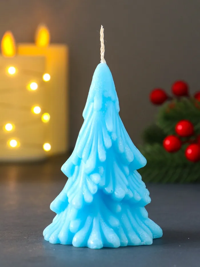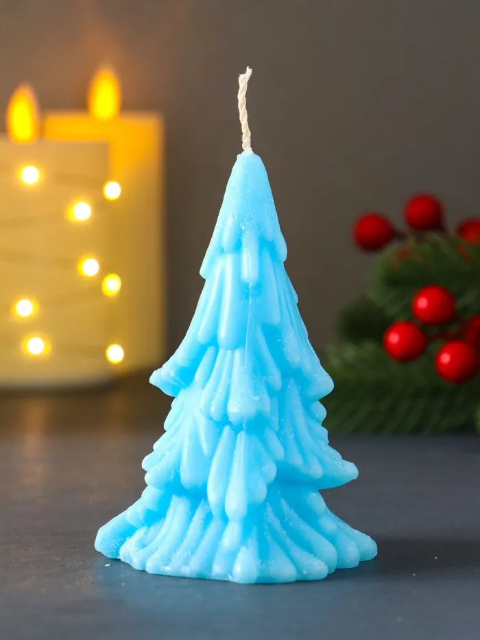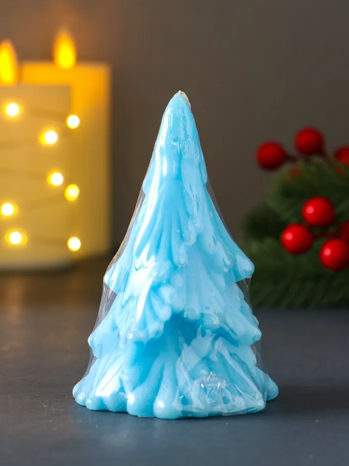 Свеча декоративная «Зимняя Ель», 70×110 мм, голубая