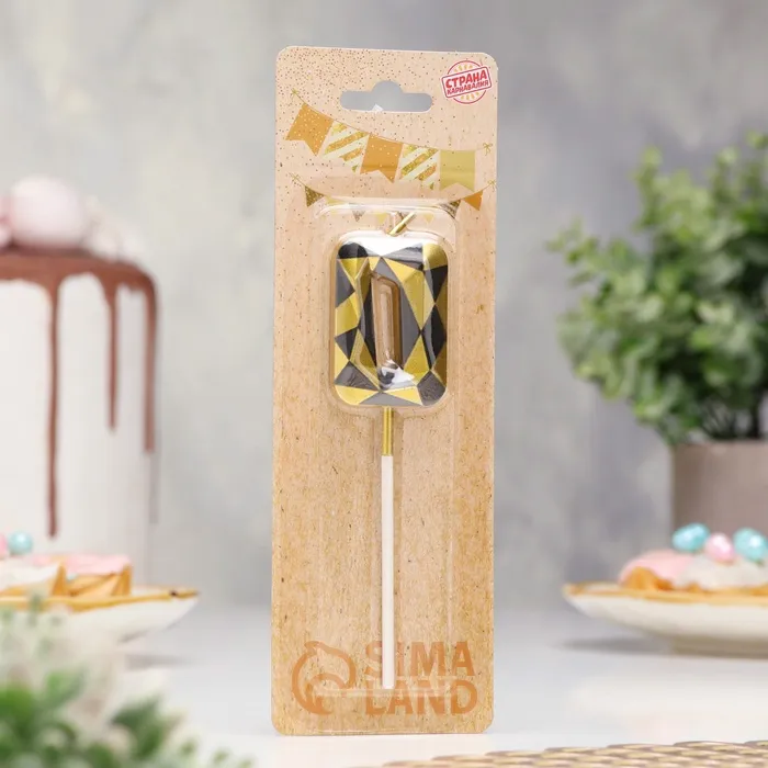 Свеча для торта «Алмаз», цифра 0, золотой с черным — Характеристики