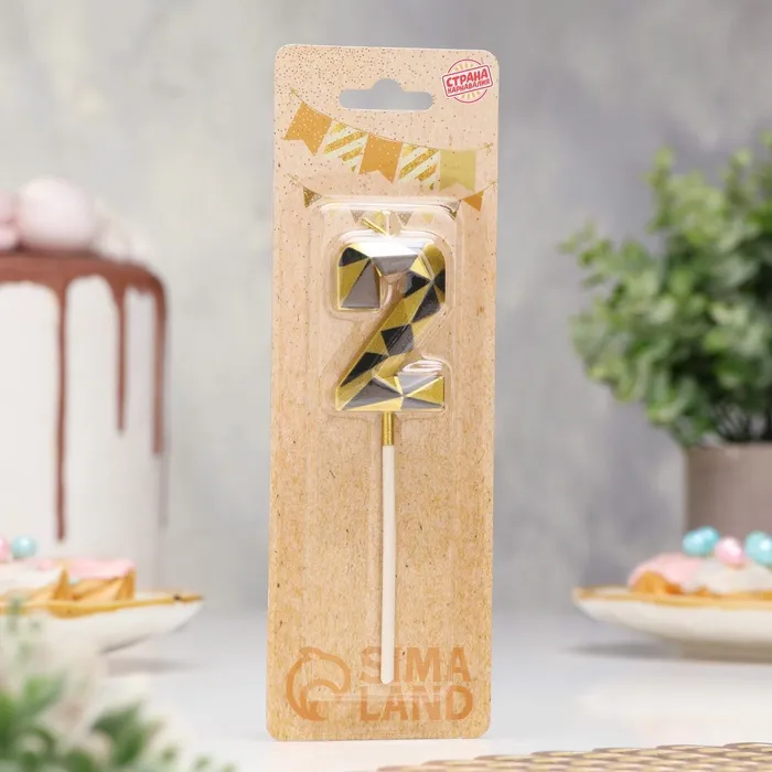 Свеча для торта «Алмаз», цифра 2, золотой с черным — Характеристики