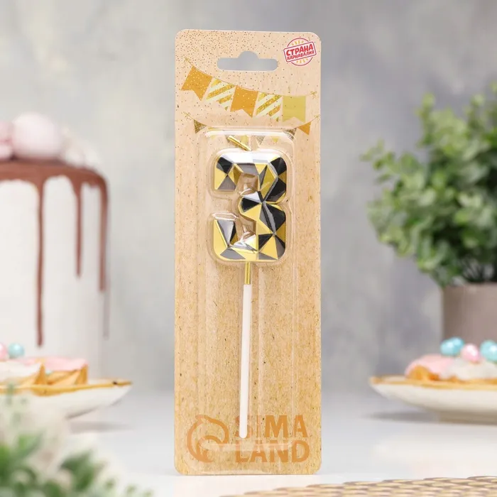 Свеча для торта «Алмаз», цифра 3, золотой с черным — Характеристики