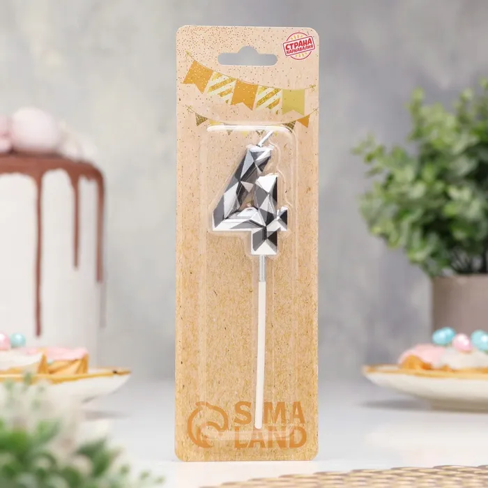 Свеча для торта «Алмаз», цифра 4, серебристый металлик — Характеристики