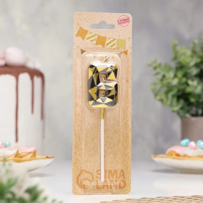 Свеча для торта «Алмаз», цифра 6, золотой с черным — Характеристики