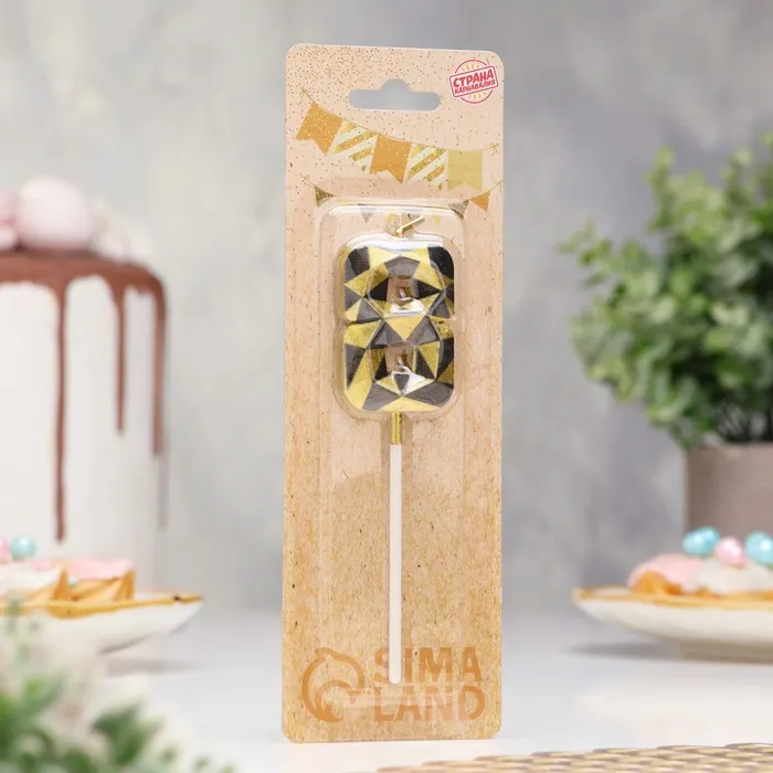 Свеча для торта «Алмаз», цифра 8, золотой с черным — Характеристики