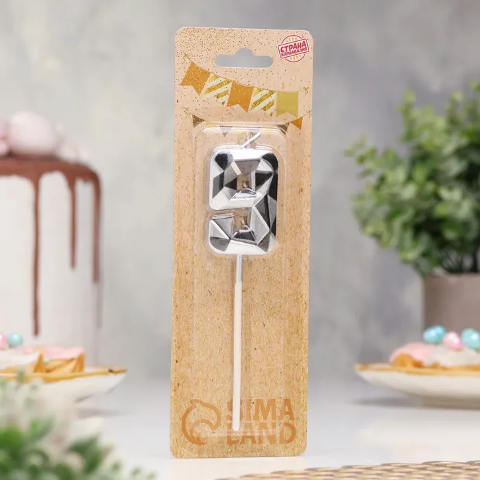 Свеча для торта «Алмаз», цифра 9, серебристый металлик — Характеристики