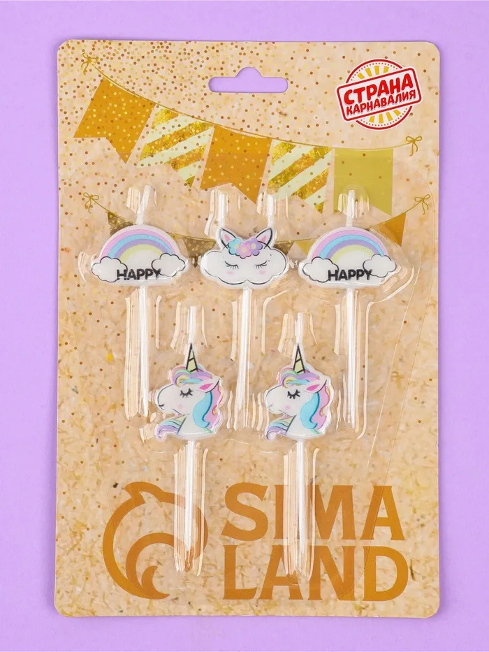 Свеча для торта «Единороги и облака», 5 шт., белые — Характеристики