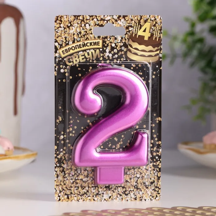 Свеча для торта «Европейская ГИГАНТ», цифра 2, 7 см, фиолетовый металлик — Характеристики