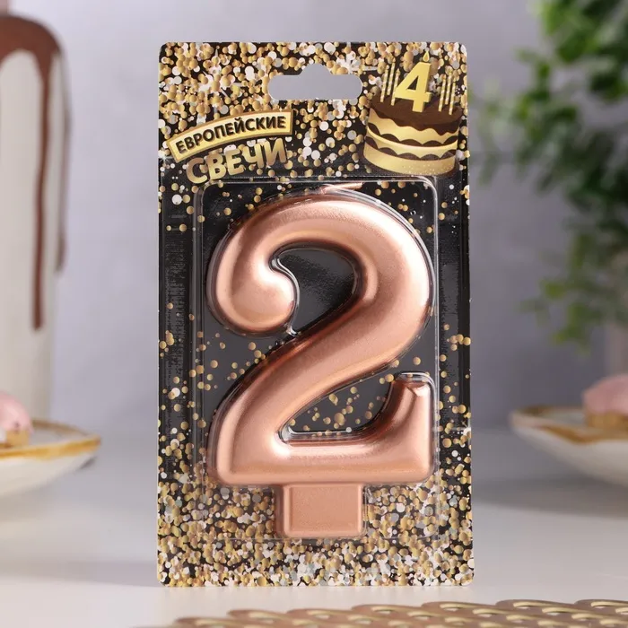 Свеча для торта «Европейская ГИГАНТ», цифра 2, 7 см, розовое золото — Характеристики