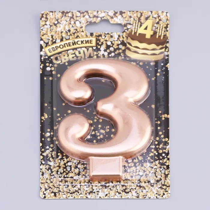 Свеча для торта «Европейская ГИГАНТ», цифра 3, 7 см, розовое золото — Характеристики