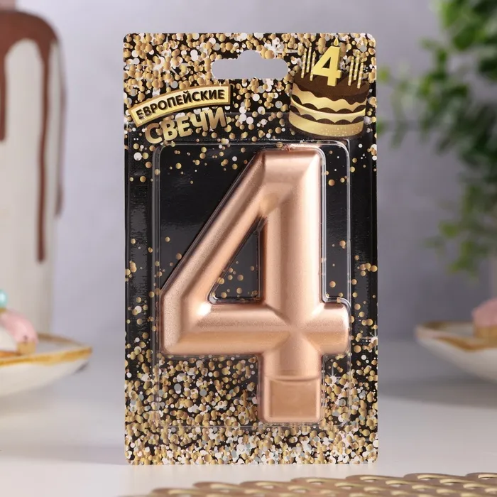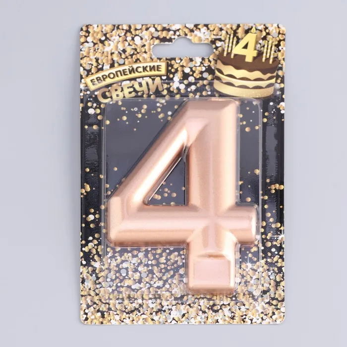 Свеча для торта «Европейская ГИГАНТ», цифра 4, 7 см, розовое золото — Характеристики