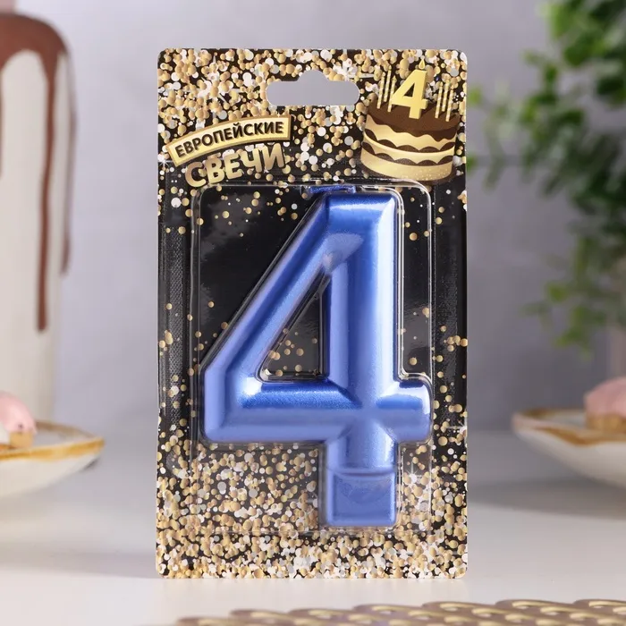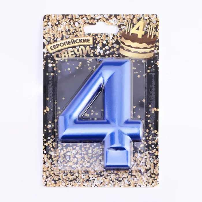Свеча для торта «Европейская ГИГАНТ», цифра 4, 7 см, синий металлик — Характеристики
