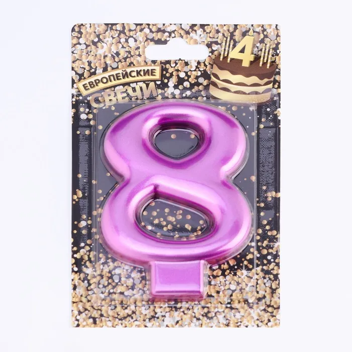 Свеча для торта «Европейская ГИГАНТ», цифра 8, 7 см, фиолетовый металлик — Характеристики
