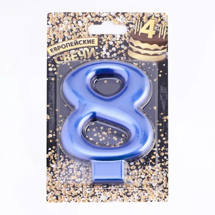 Свеча для торта «Европейская ГИГАНТ», цифра 8, 7 см, синий металлик — Характеристики