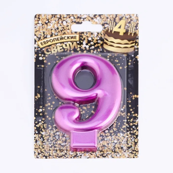 Свеча для торта «Европейская ГИГАНТ», цифра 9, 7 см, фиолетовый металлик — Характеристики