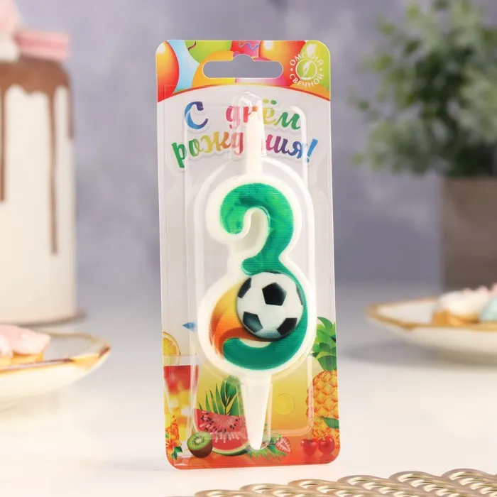 Свеча для торта «Футбольная», 10.2 см, зелёная цифра 3 — Характеристики