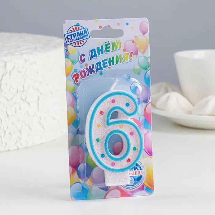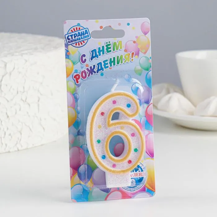 Свеча для торта «‎Горошек»‎, цифра 6, блестки, 7 см, МИКС — Характеристики