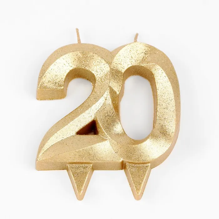 Свеча для торта юбилейная «Грань», цифра 20, золотой блеск, 8 см — Характеристики