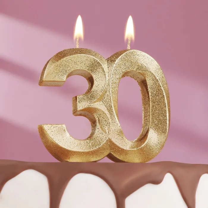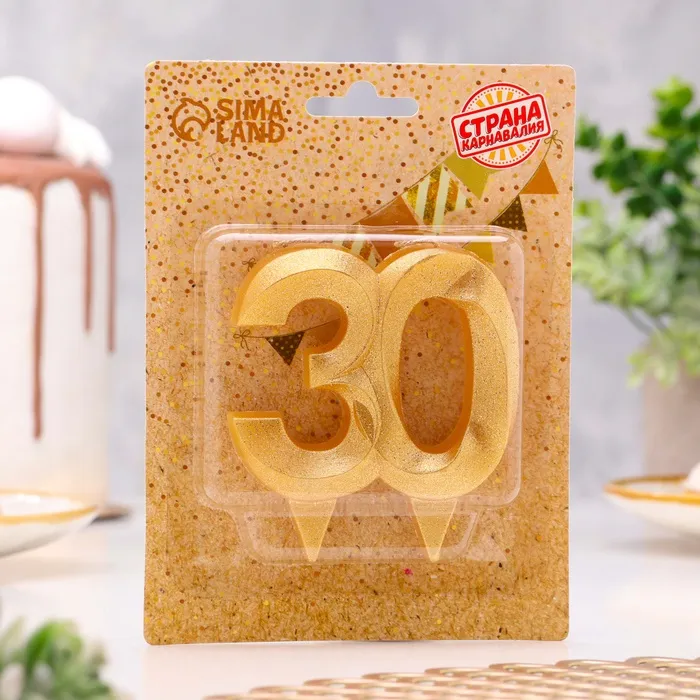 Свеча для торта юбилейная «Грань», цифра 30, золотой блеск, 8 см — Характеристики