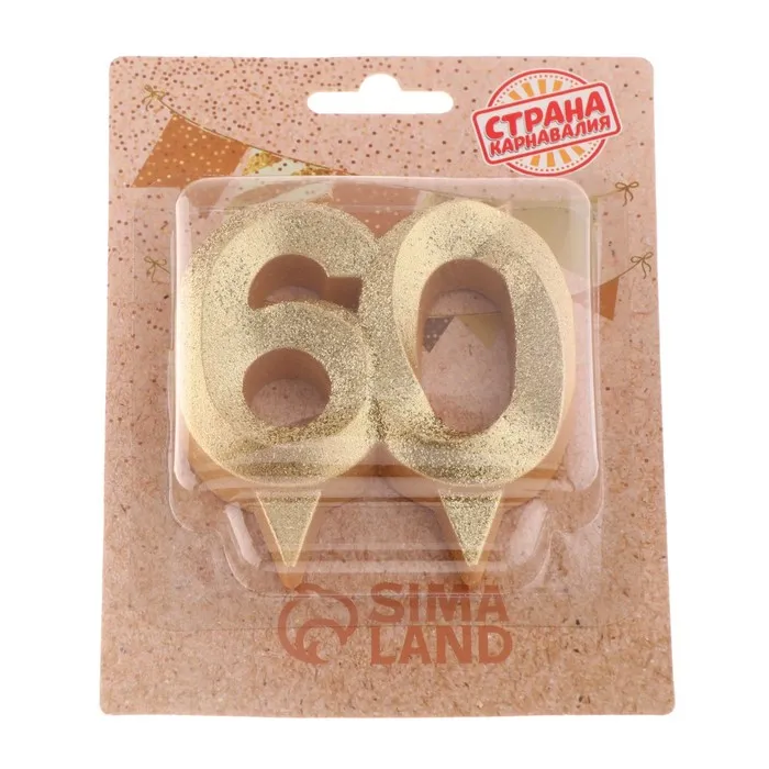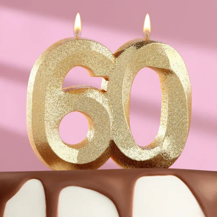 Свеча для торта юбилейная «Грань», цифра 60, золотой блеск, 8 см — Характеристики