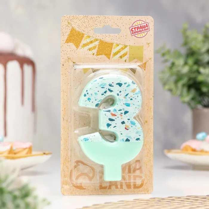 Свеча для торта «Мозайка», цифра 3, голубой — Характеристики