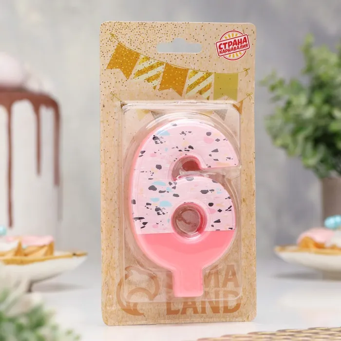 Свеча для торта «Мозайка», цифра 6, розовый — Характеристики