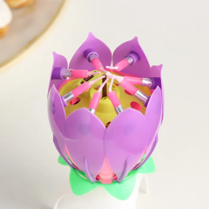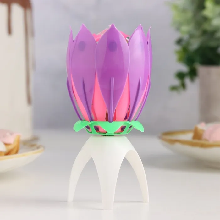 Свеча для торта музыкальная «Тюльпан», фиолетовая, 12×5 см