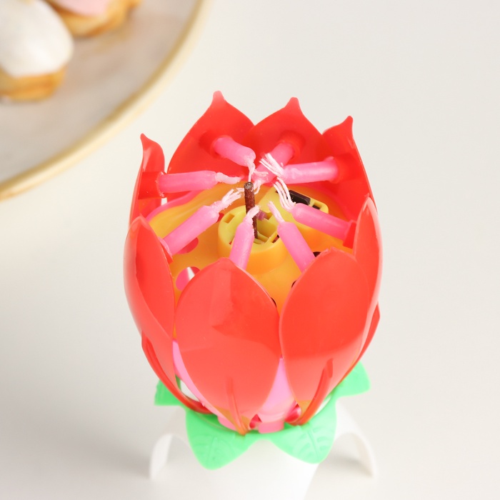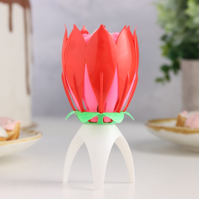 Свеча для торта музыкальная «Тюльпан», красная, 12×5 см
